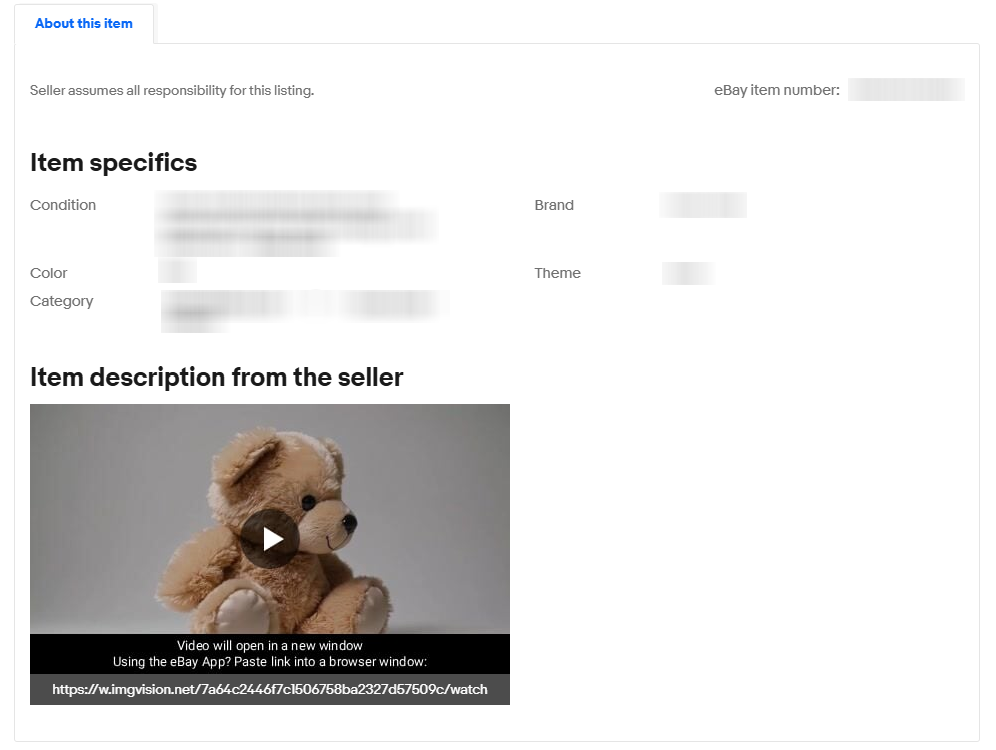 When added to your listing, buyers will see a video thumbnail. Clicking it opens the video in a new tab or window, so the buyer can easily return to your eBay listing after watching. Buyers using eBay’s mobile app can select and copy the video link to their mobile browser to view it.