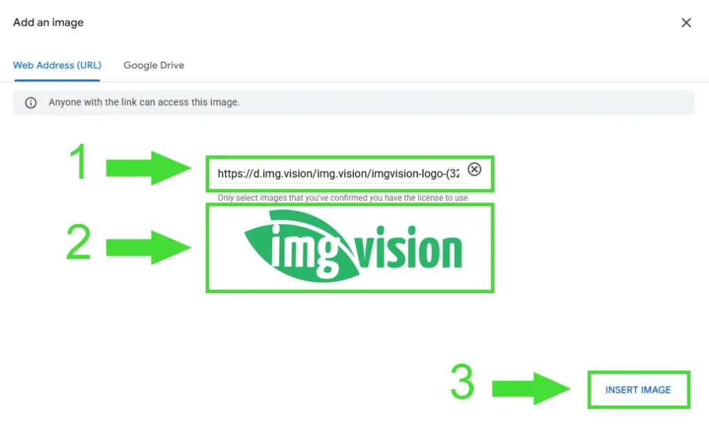 You’ve already opened the signature image box in step one of this guide. Now paste the signature image’s direct link into the link input box.