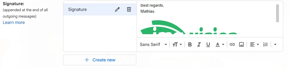 Once you’ve created the signature with the signature image. You need to tell Gmail to use the new signature.