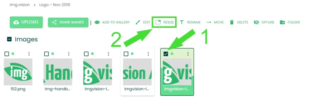 If you are on the Professional tier of Img.vision and above, you can use the resize function in the Img dashboard to resize the image.
